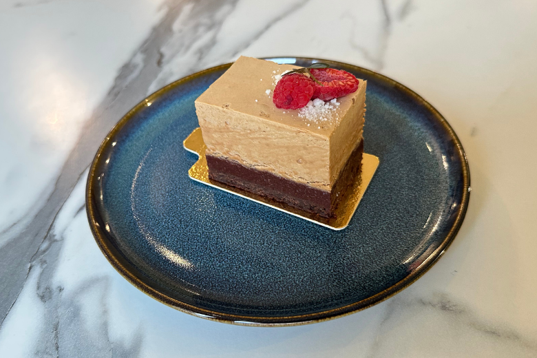 Karamellchoklad mousse, Hallontryffel, Chokladbotten