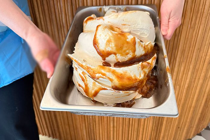 Bananglass med toffee. Allergener: Mjölk/Laktos. Vår glass kan innehålla spår av mjölk, nötter samt soja och produceras i samma kök.