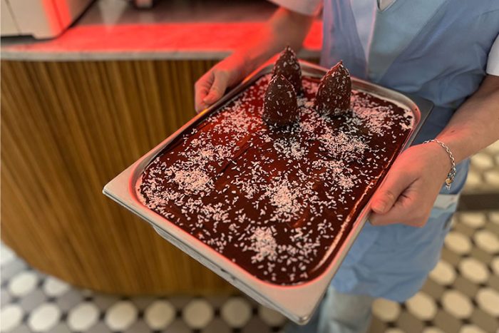 Krämig Mjölkglass blandat med Söt och Fluffig Maräng, med ett Lager av Choklad och Kokos på toppen.